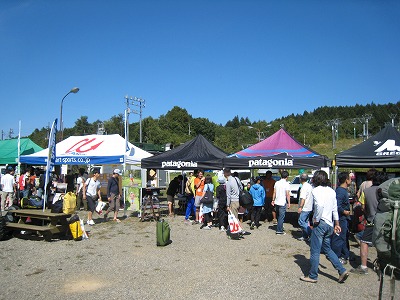 受付会場にはスポンサー各社のブースがずらり。サプリメント、ウェアやグッズ、シューズまで買えて、ちょっとしたアウトドアスポーツ店街です。
