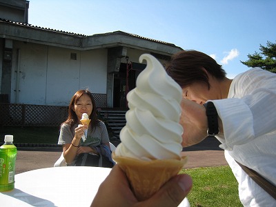 受付を済ませた我々は、空いた時間で観光することに。。。高原で食べるソフトは最高です!(斑尾50kmのために甘いもの断ちしているABさん、ごめんなさい)