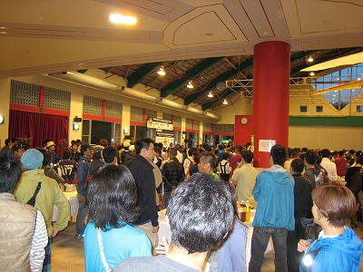 会場は500名以上の猛者ですごい熱気。関係者の挨拶が終わるやいなや、山盛りの料理がみるみる無くなります。BEACHの男性スタッフ♂が500人いるようなもんです。