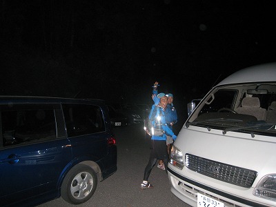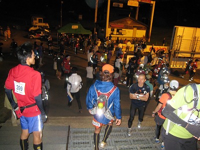 翌朝AM4:15・・・少々緊張の面持ちでスタート会場入り。ぞくぞくとランナーが集まってきます。出場者は男性460名、女性72名の計532名(エントリー時)。いずれもウデ(足?)に覚えのある強者ランナーばかり。ちなみに真ん中の後ろ姿の男性がインストラクター八木くんスタート前の雄姿。
