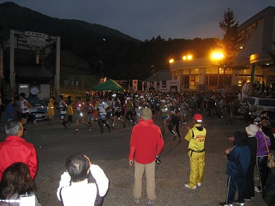 そしてAM5:30、山々に響き渡る号砲とともにレーススタート!これから22時間、翌日未明AM3:30までの壮大なレースが始まりました。