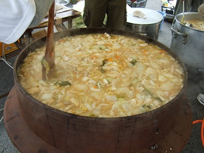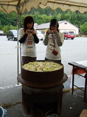そのボランティアの皆さんがゴール地点で仕込んでくれた大きな釜・・・(人が入れそう)