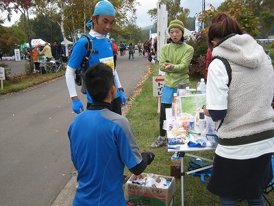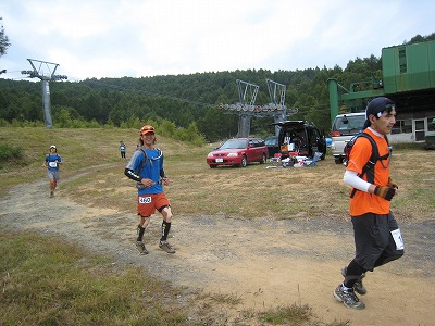 さて、レースに話を戻し、こちらは最初のアシスタントポイント(選手が家族・友人から飲み物や食べ物、マッサージ等のサポートを受けることができるポイント。8ヶ所のエイドポイントのうち4ヶ所で併設が認められています)である2A斑尾高原レストランバンフ(23.9km地点)