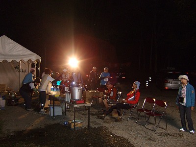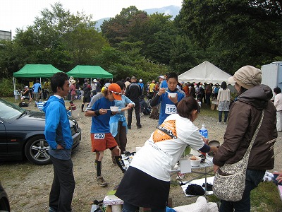あったかい豚汁!レースで疲弊した選手・ペーサーにはこの上ないごちそうです。(これだけあっても飢えた500名以上のランナーがいればあっという間になくなるのでしょうが・・・)