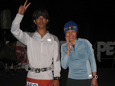 ボランティア参加のMPさん(左)とMTさんのペーサーを務めたChizさん。スタート前から最後の選手がゴールした後まで働き詰めで選手をサポートしてくれました。彼女のような多数のボランティアの方によって大会は運営されています。拍手!