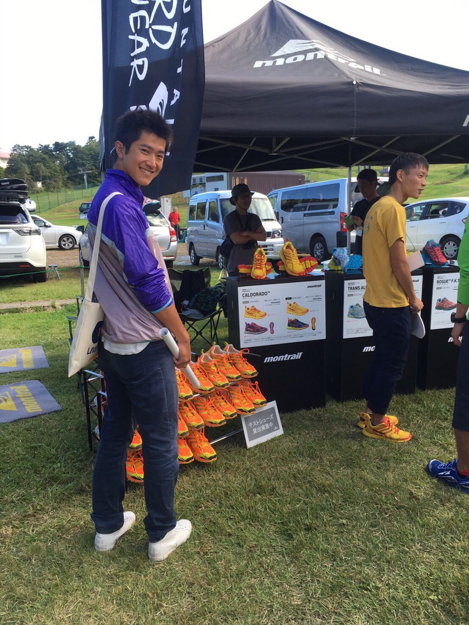 なんとモントレイルの展示ブースは、あの2014年にハセツネで驚愕の大会新記録で優勝した上田瑠偉選手が担当しているじゃないですかぁ!(・o・)!