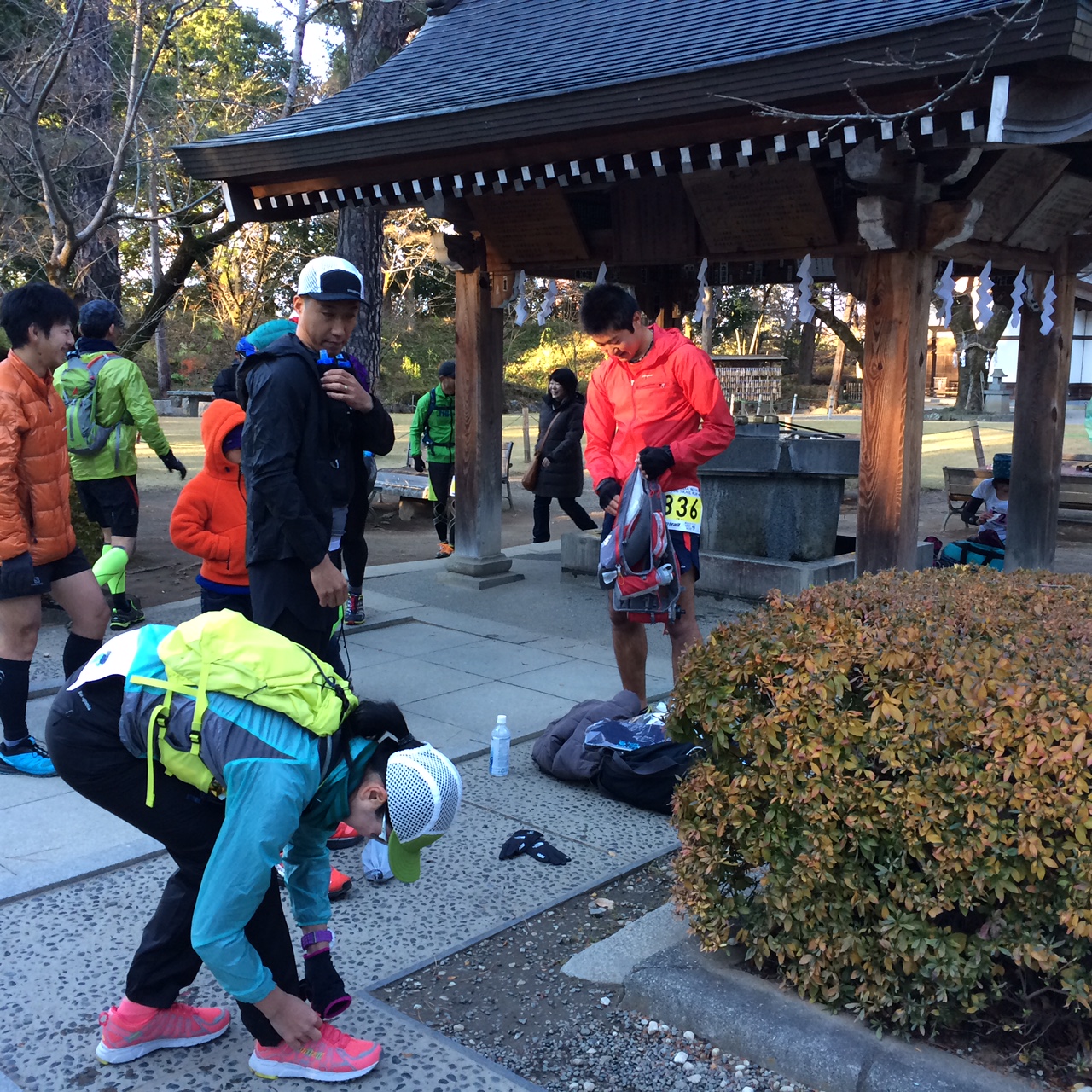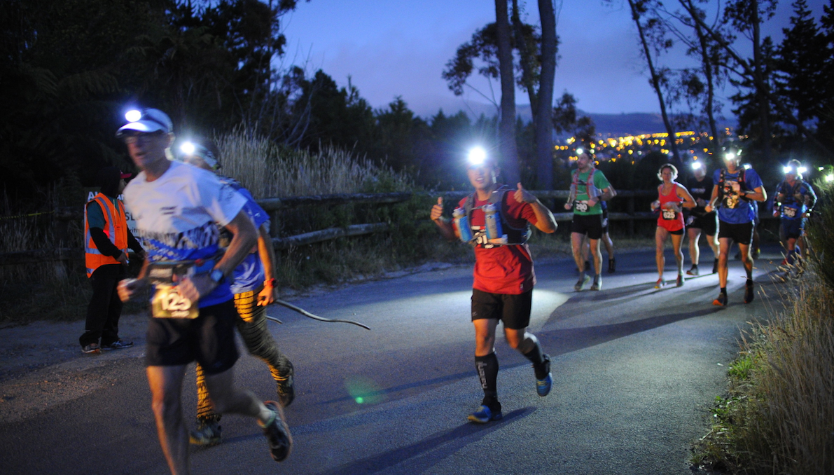 スタート時はまだ暗く、ヘッドランプ着用です。