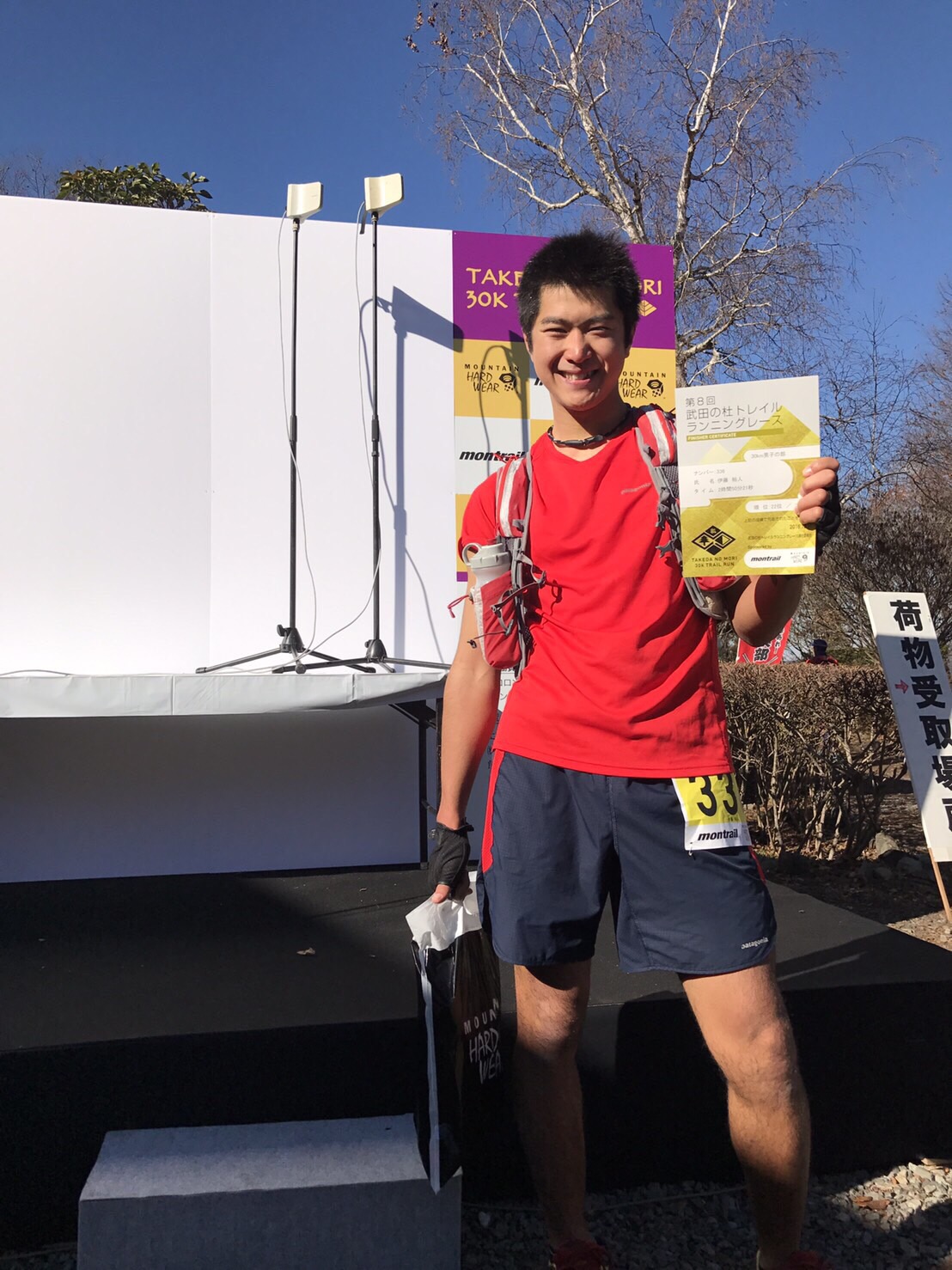 写真をとり、記録証を見ると、なんと女子14位という初レースとは思えない結果でゴールしました!!彼女はトライアスロンをやっていて走ることが得意だそうです。