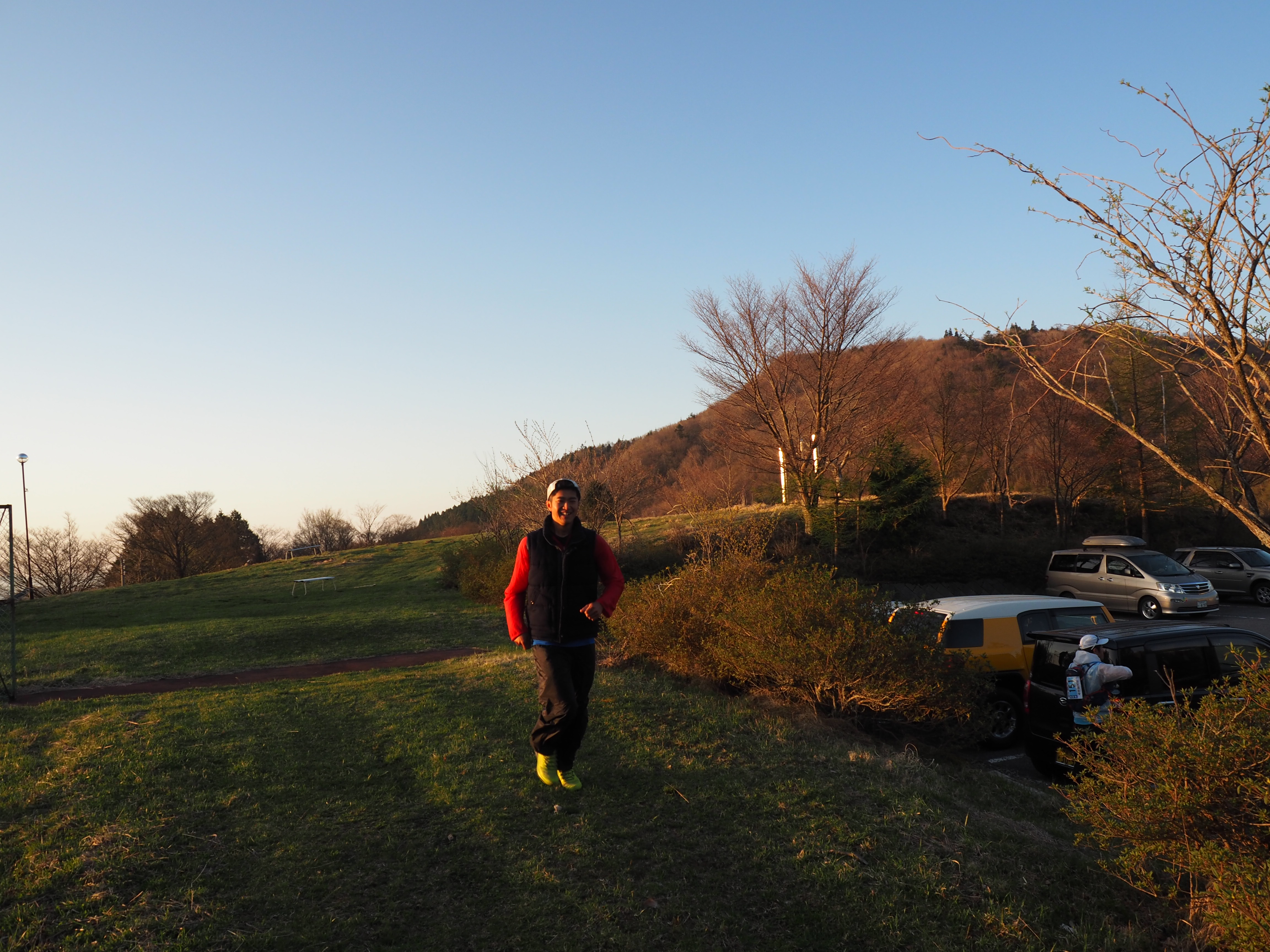 トレイルランニングでもよくご一緒する、レースに強い葉山のランナー「ハテさん」に会いました。ハテさんチームは、レギュラークラスに参加です。