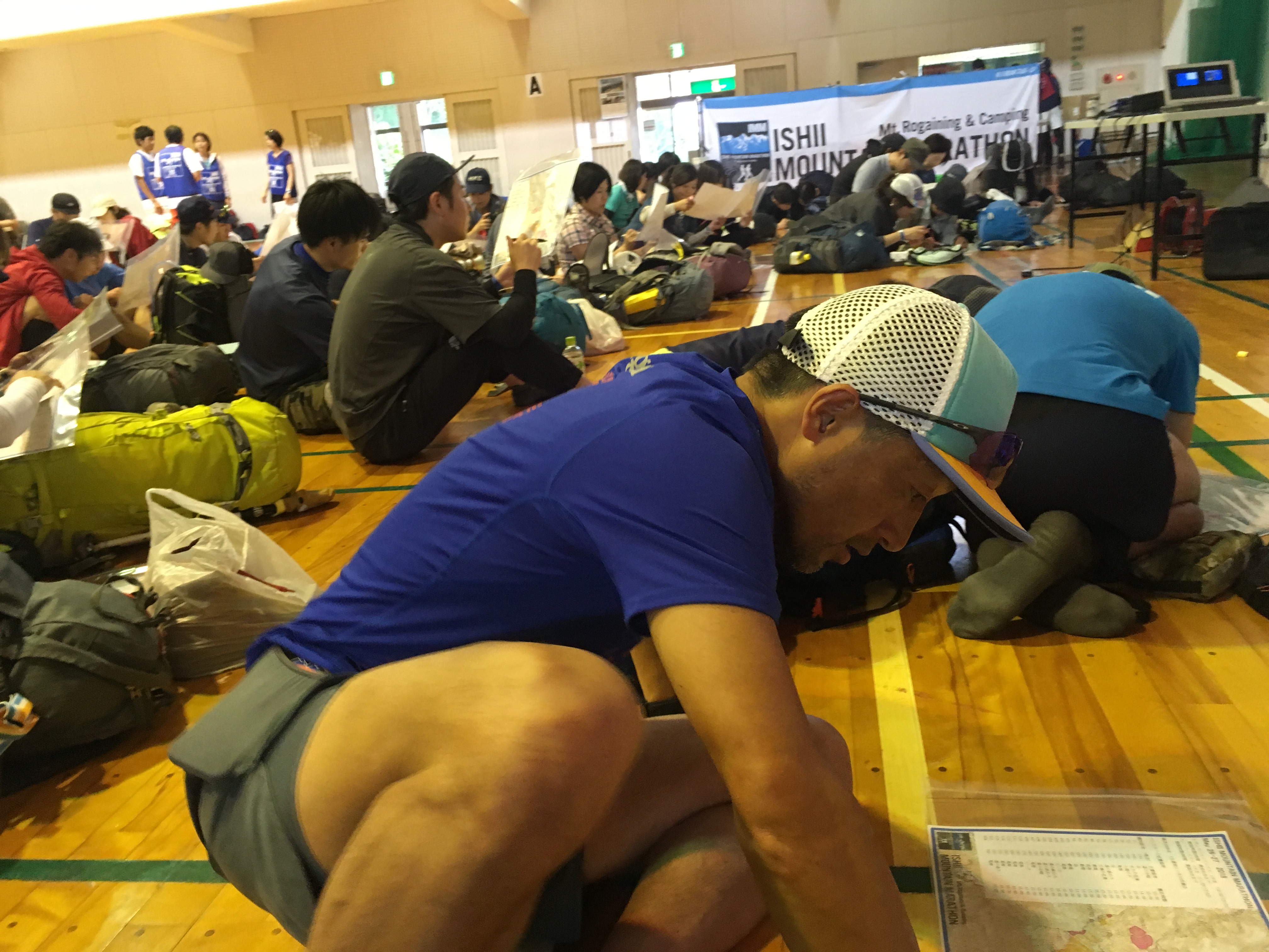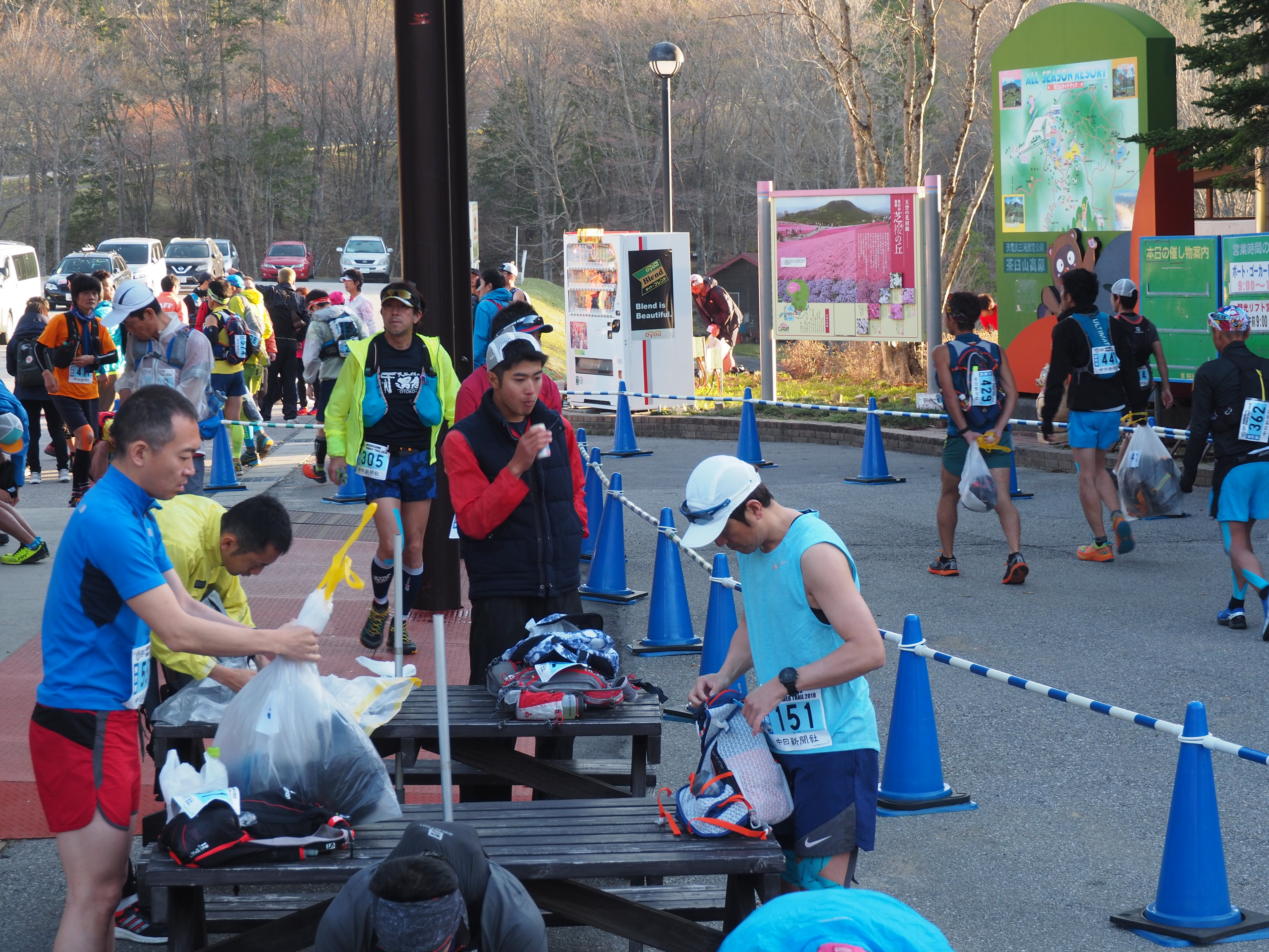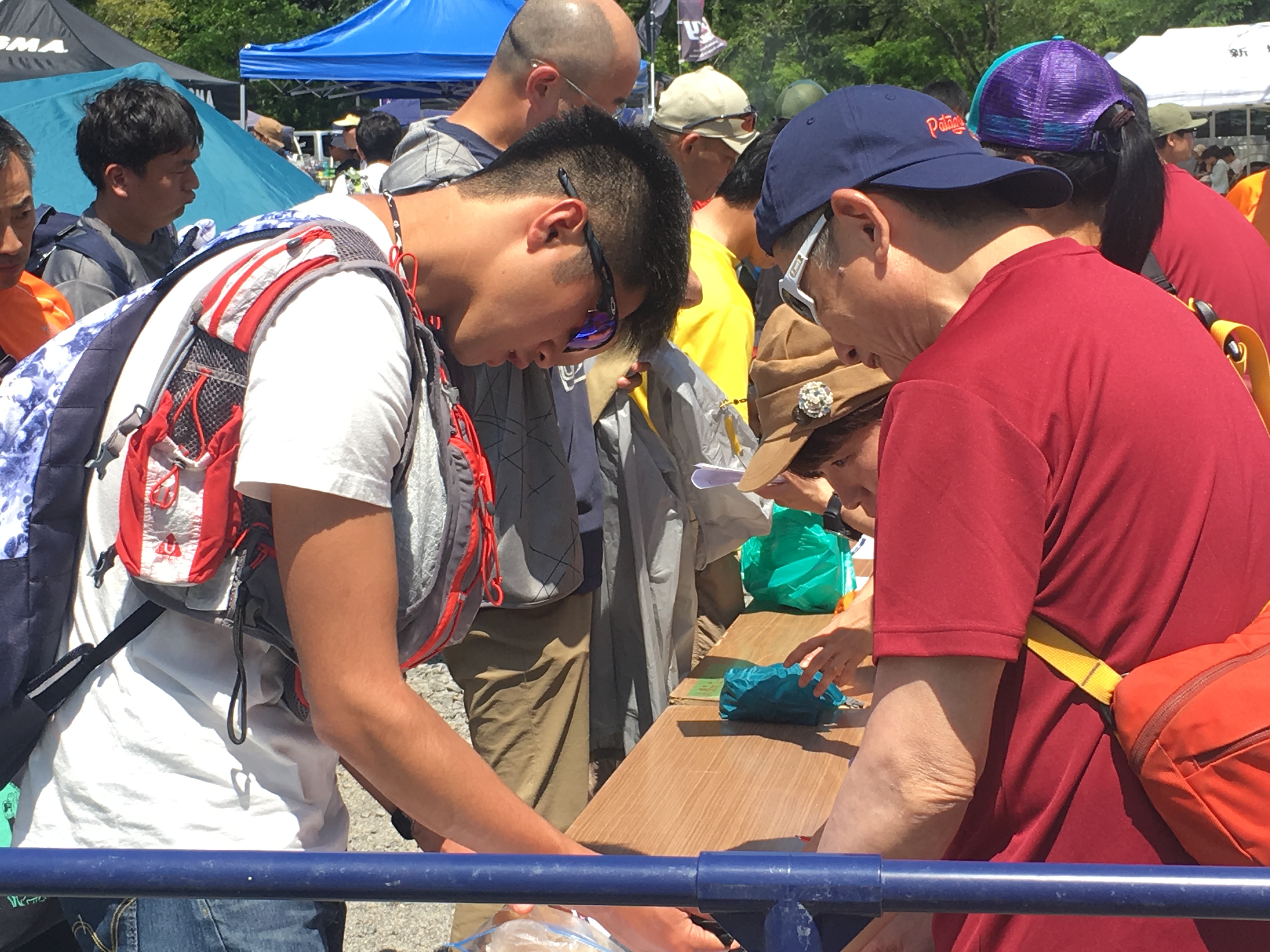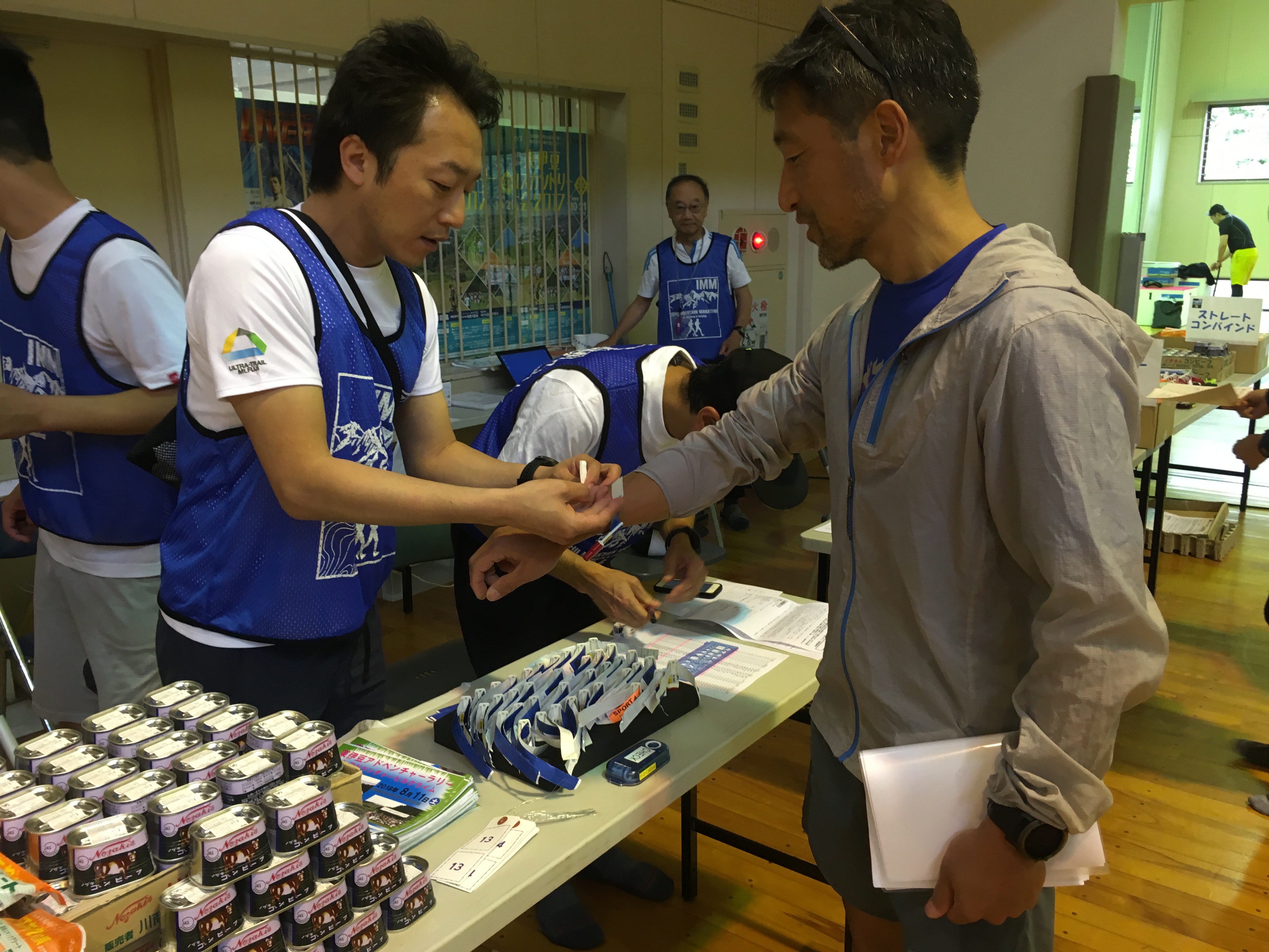 受付は事前に自宅に送られてくる自分のゼッケン番号が書いてある用紙、契約書を持っていきます。そこで初めてゼッケンが配られるのです。