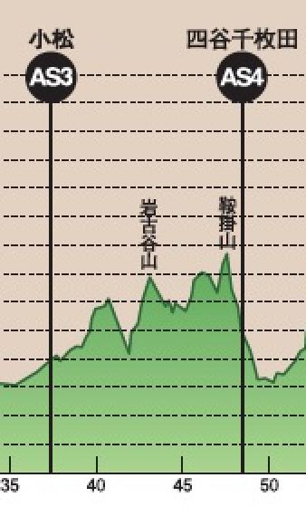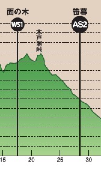 昨年も体験して一番時間がかかるこの区間は「走るというより山歩き」区間。地道に歩き続け、登ったり、下ったりの繰り返しです。もちろん内臓の揺れを抑えるために得意の大股走りを封印し、上半身が揺れない「忍者走り」を心がけました。