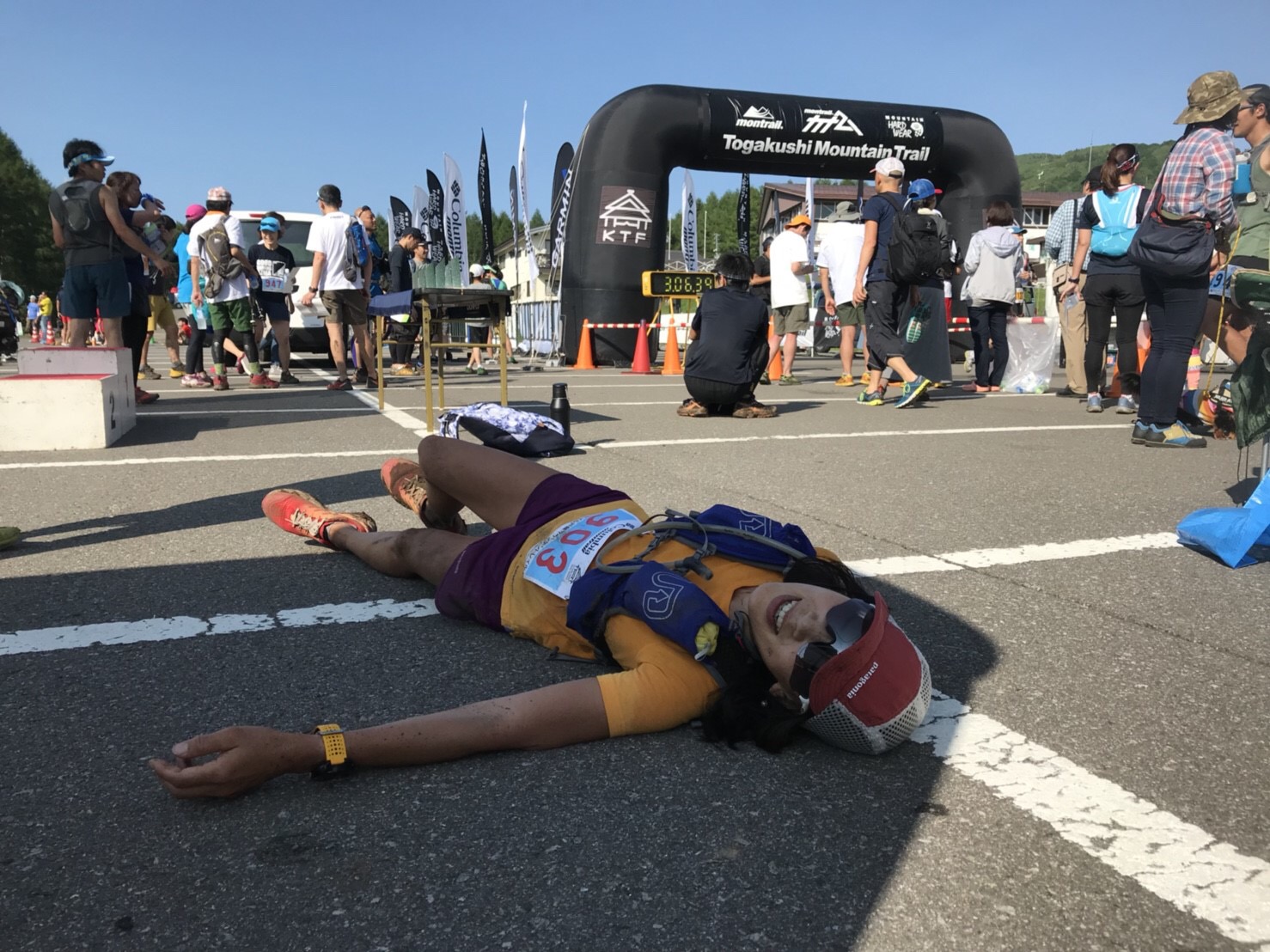 ゴールにはカズさん、みのりさんはもちろん、弘樹さんとえりこさんの姿もありました。暑くて心配してくれたえりこさんは僕が無事にうゴールして涙を流してくれました。とても嬉しかったです。昨年より暑く、完走率も下がりました。やはり奥三河は本当に難しいコースと改めて実感させられました。前に走っていたランナーが続々とリタイヤしたり、汗を掻いていないような人が早かったりと。本当にトレイルランニングは面白いと改めて実感させていただきました。