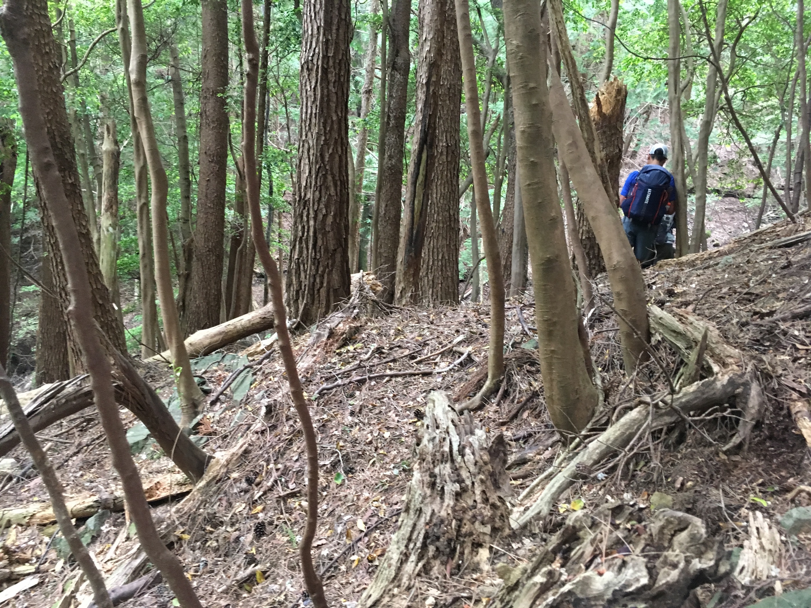 トレイルなんか無い、尾根と谷をポイントの方角に突き進みます。