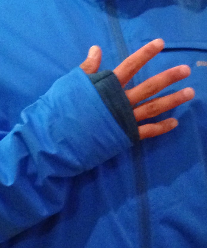 腕袖の部分がハンドウォーマーになっており、冬のランニングは欠かせない1枚です!