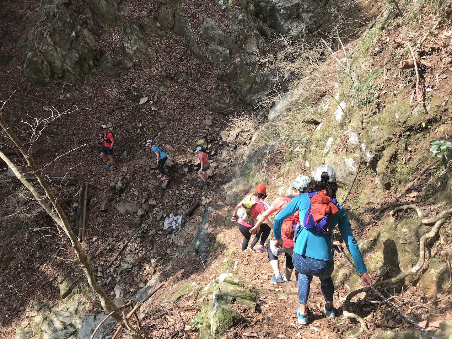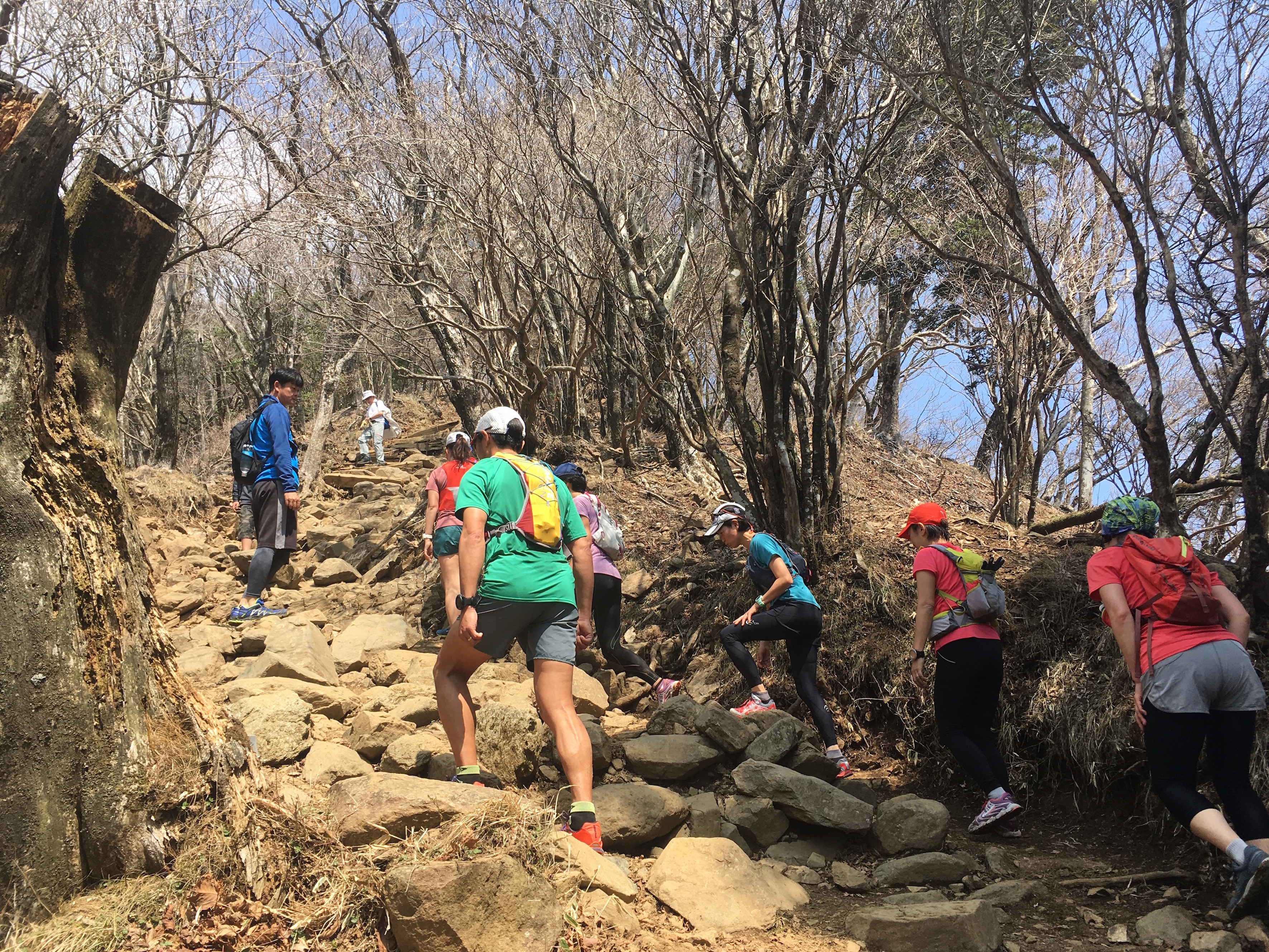 大山のトレイルは気持ちよく走れるコースもあれば、岩が出ているところもあります。