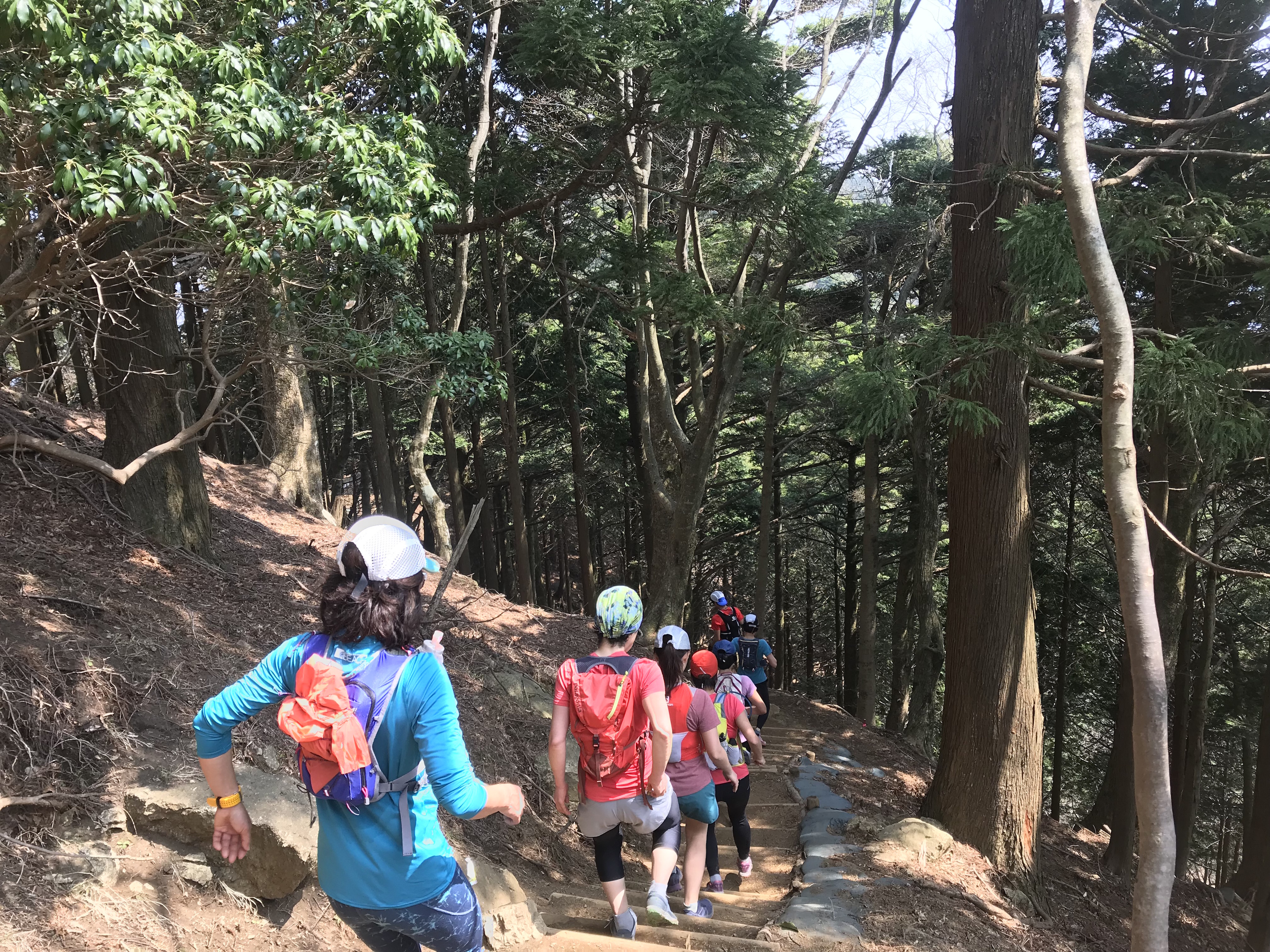 子供連れの方もいましたが、標高1252mある山なので休憩しながらゆっくり進みました。登りは歩いて走れるところは走り、また上り坂が出てきたら歩く。のんびりトレランツアーです。