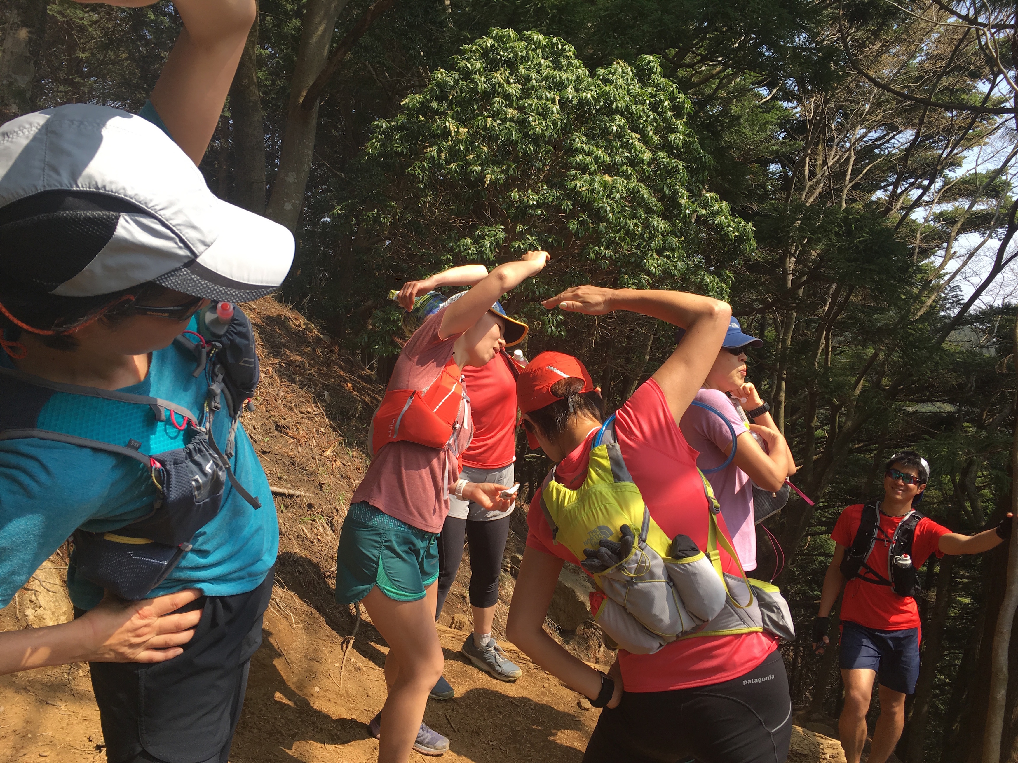 みんなで横っ腹を伸ばして休憩。