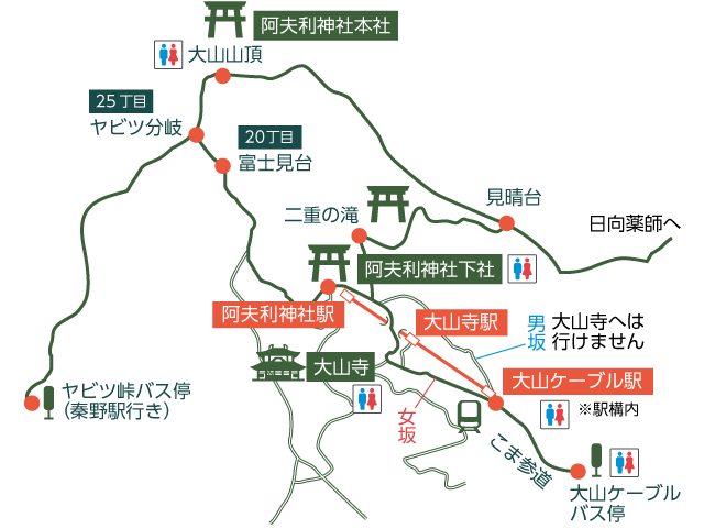 今回のルートは大山ケーブル駅〜阿夫利神社〜ヤビツ分岐〜大山山頂