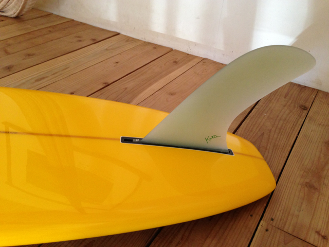 「KK FISH」Katsu Surf Boardの十八番(オハコ)です。黒野が最も愛用しているボード。幅/厚さとも申し分無く、ヒザの波からガンガン走ります。ロングボードからショートにチャレンジしたい人は6feet位にすると良い。クラッシックな大きなライン、大人のサーフィンを目指す人はぜひ!