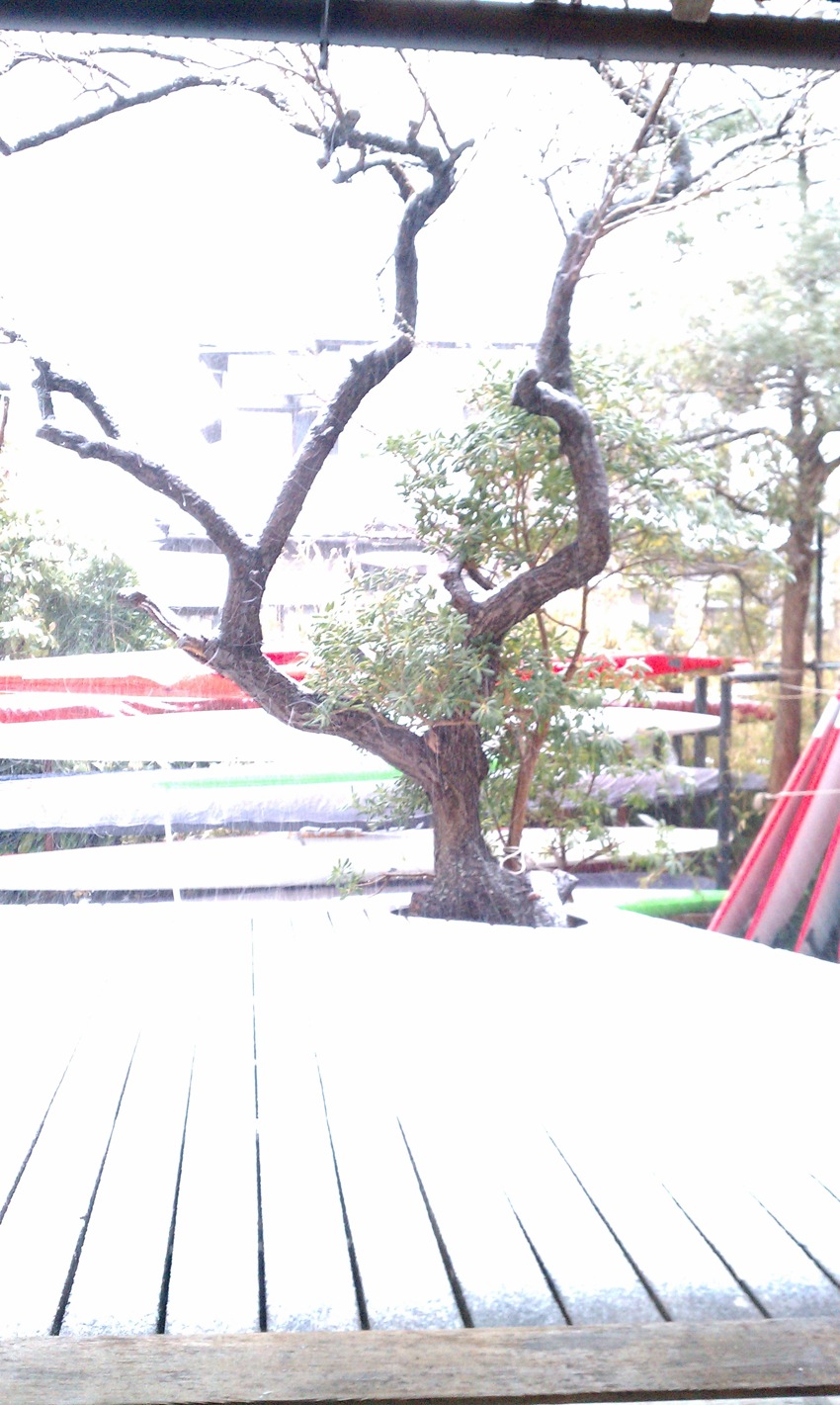 霙まじりの冷たい雨、ぽつぽつふわりと雪舞い葉山。