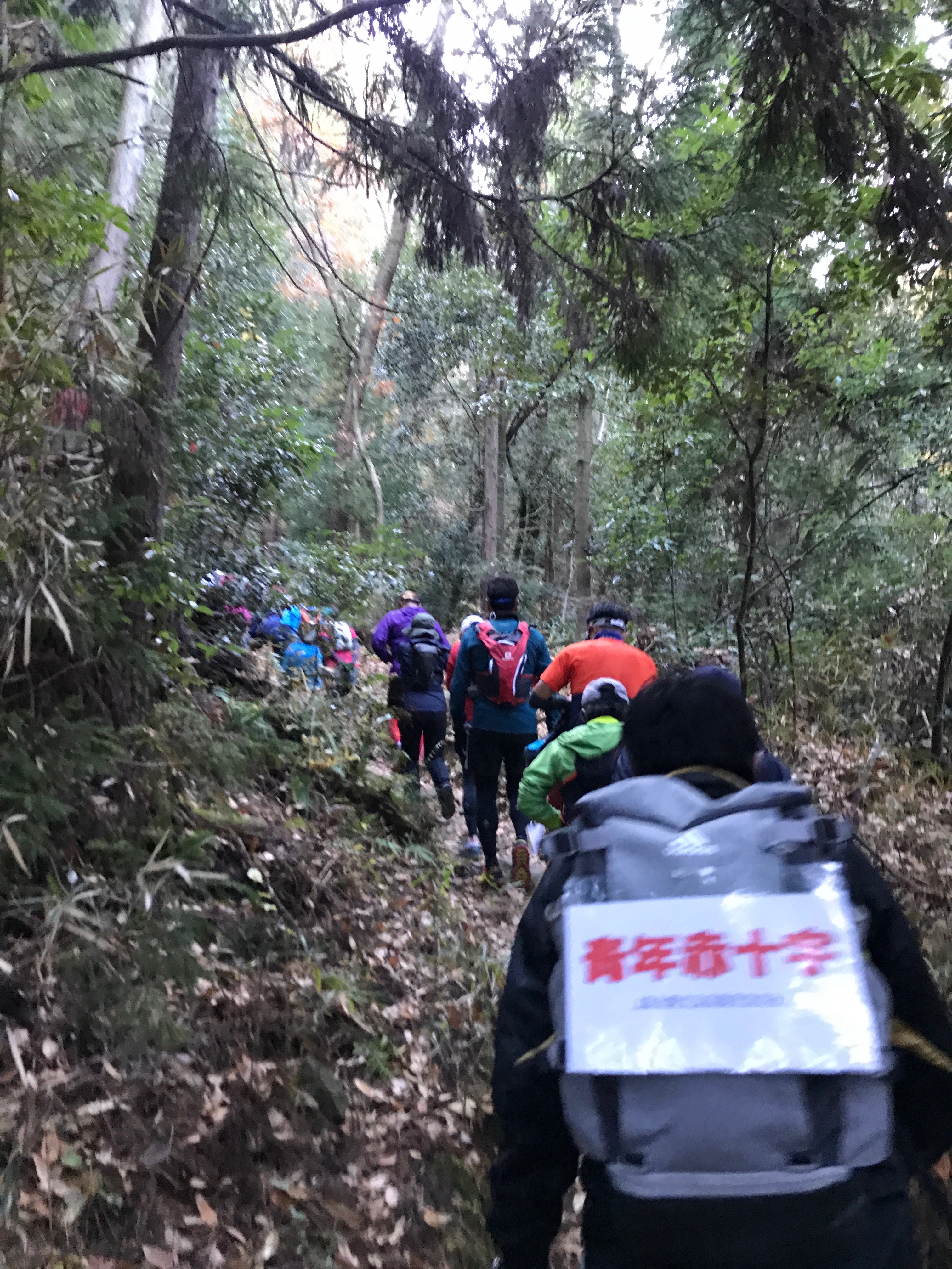 ここで心拍が191まで上がってしまいました。葉山駅伝並みのスピードで走ってしまいした。先頭集団にいましたが、トレイルに入ってからこのままず〜っと登りが続くのでペースを落とすことにしました。そこから20人ほどに一気に抜かれてしまいましたが、長い長い上り坂を無理に走るより、少しペースを落として後半の下りで巻き返すことを頭に入れて走り続けました。