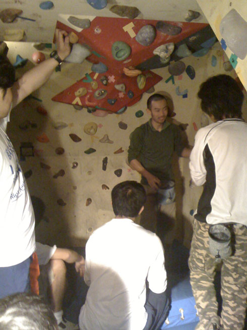 ボルダリングルームから楽しそうな笑い声が響いてきます。