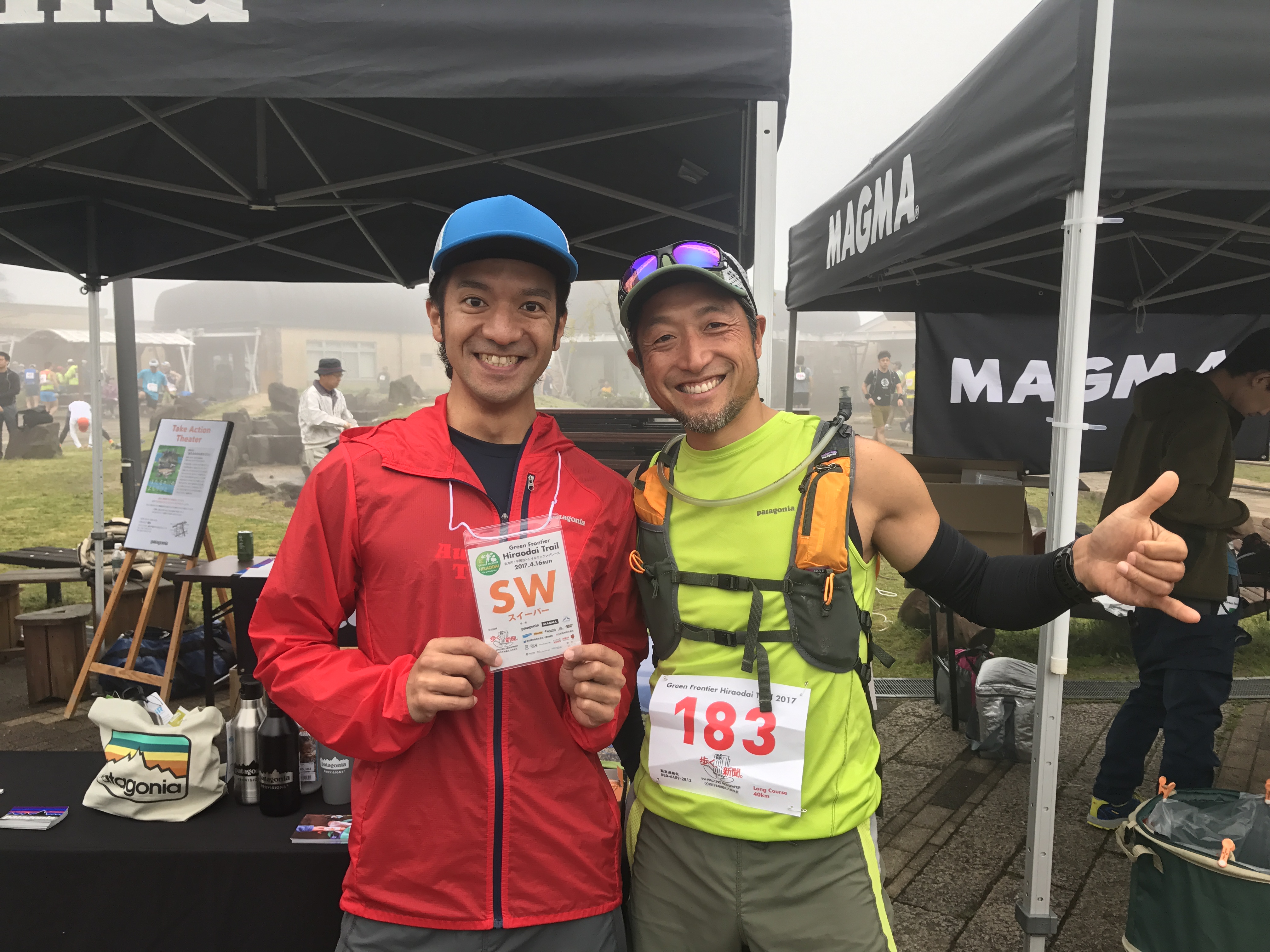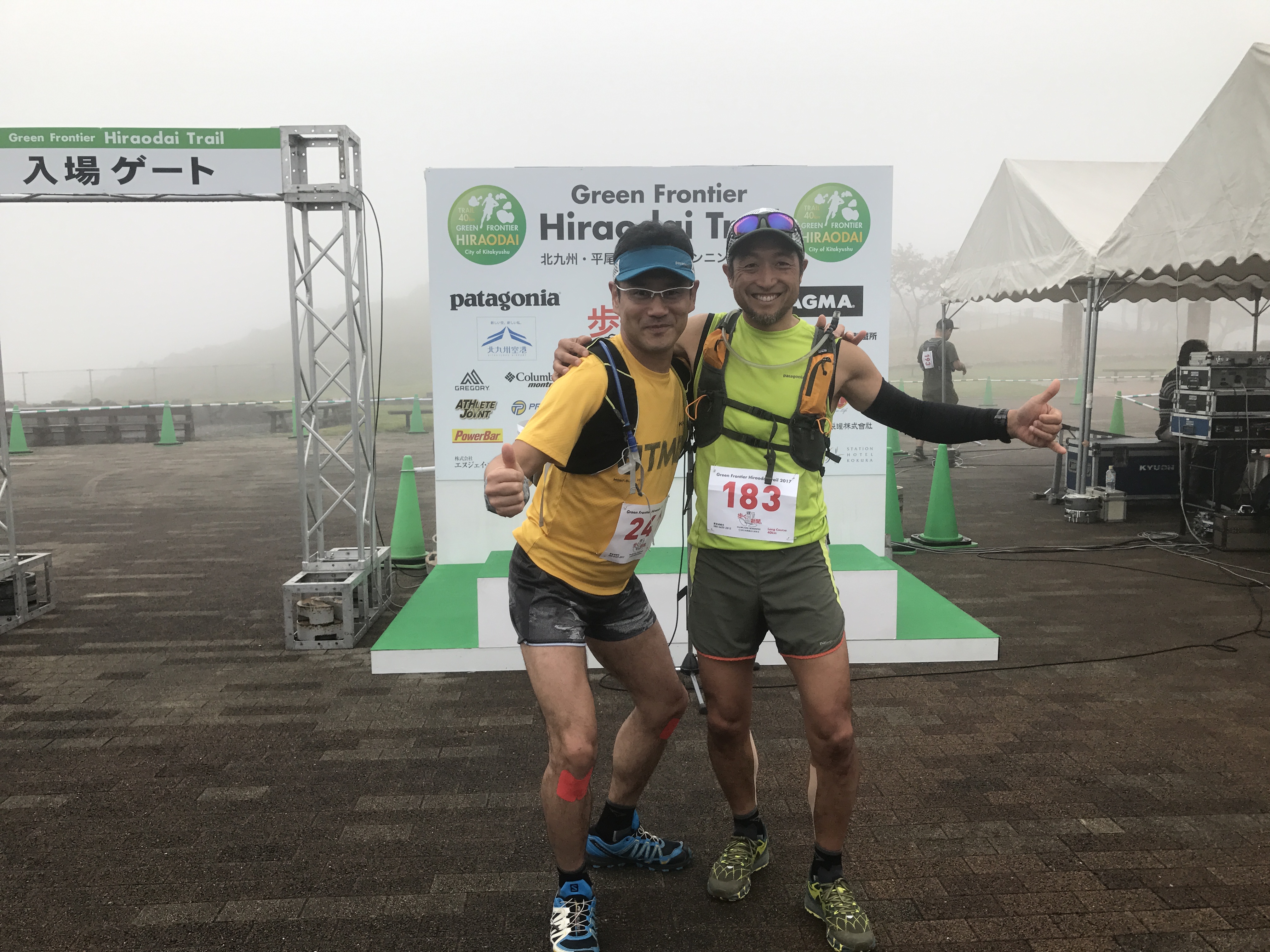 レース前の記念撮影。まだ辺りはガスってますが、走り始めて1時間程で晴れてきます。