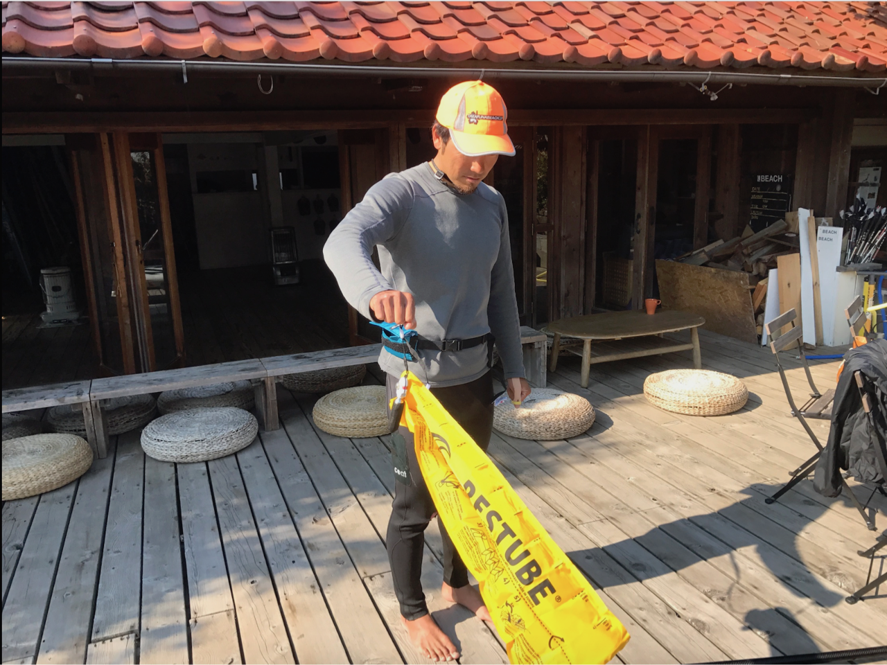 一言で説明すると、浮き具です。しかし、ただの浮き具ではありません。RESTUBEは万が一の時に紐を引っ張るとCO2カートリッジから瞬時に空気が入り、ブイが膨張する仕組みです。SUPやサーフィン、オーシャンスイム、OC、トライアスロン、シュノーケリングはもちろん海水浴にきている方に一人一つは持ってもらいたいアイテムです。最近のSUPの大会では浮き具は必ず身につけなければいけません。石垣島トライアスロンでもRESTUBEが公式に採用決定しました。選手の安全に、寄与したと思います。