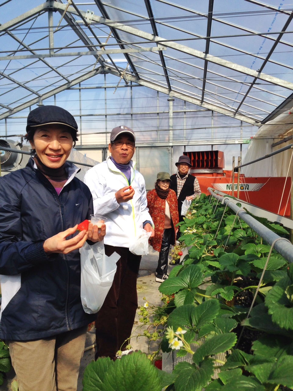 まずは、イチゴ狩り!ウォーキングのためのエネルギー補給?!笑