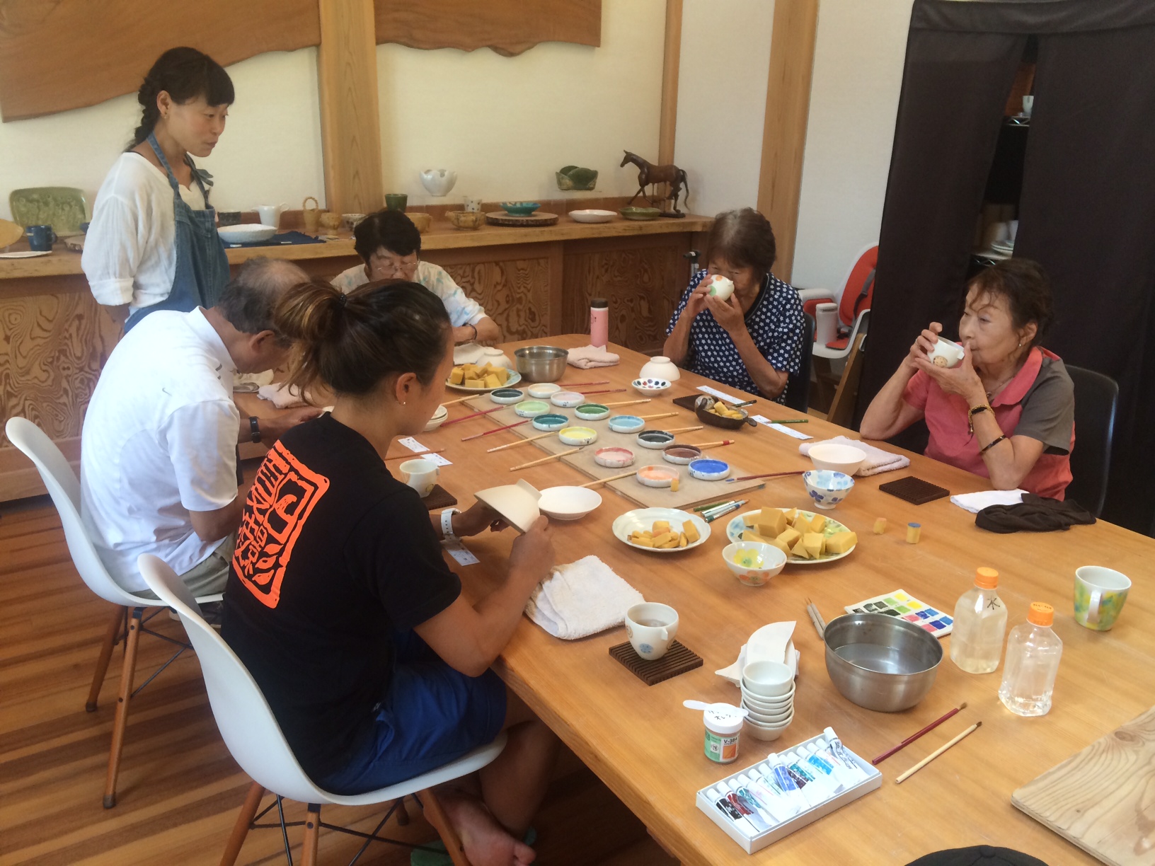 プロの皆さんにご指導いただき、世界で1つの自分だけの器になるよう絵を描きました。