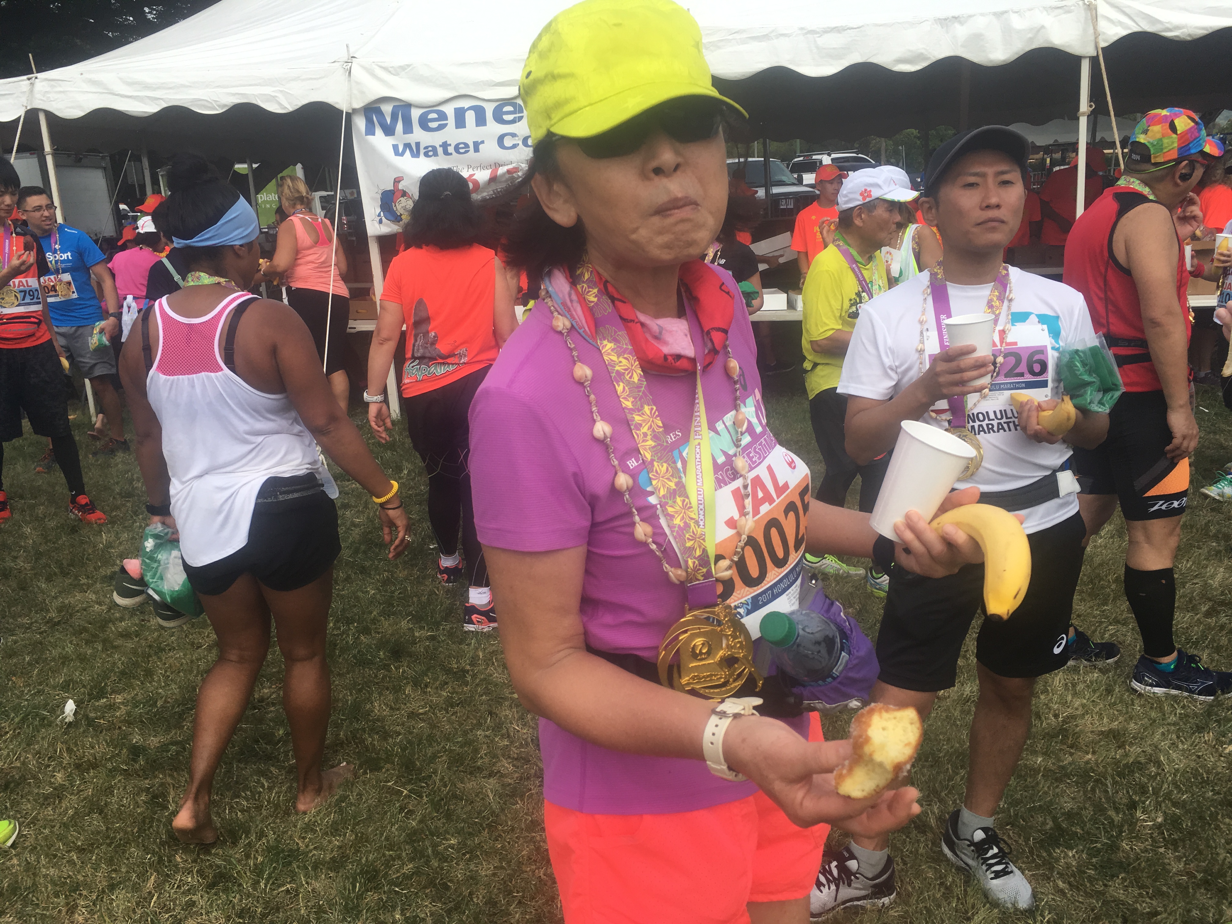 ゴール後はハワイのロコスイーツ「マラサダ」とバナナが振る舞われます。