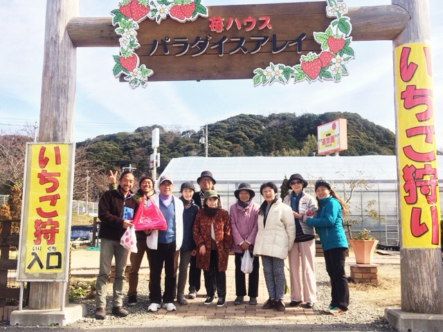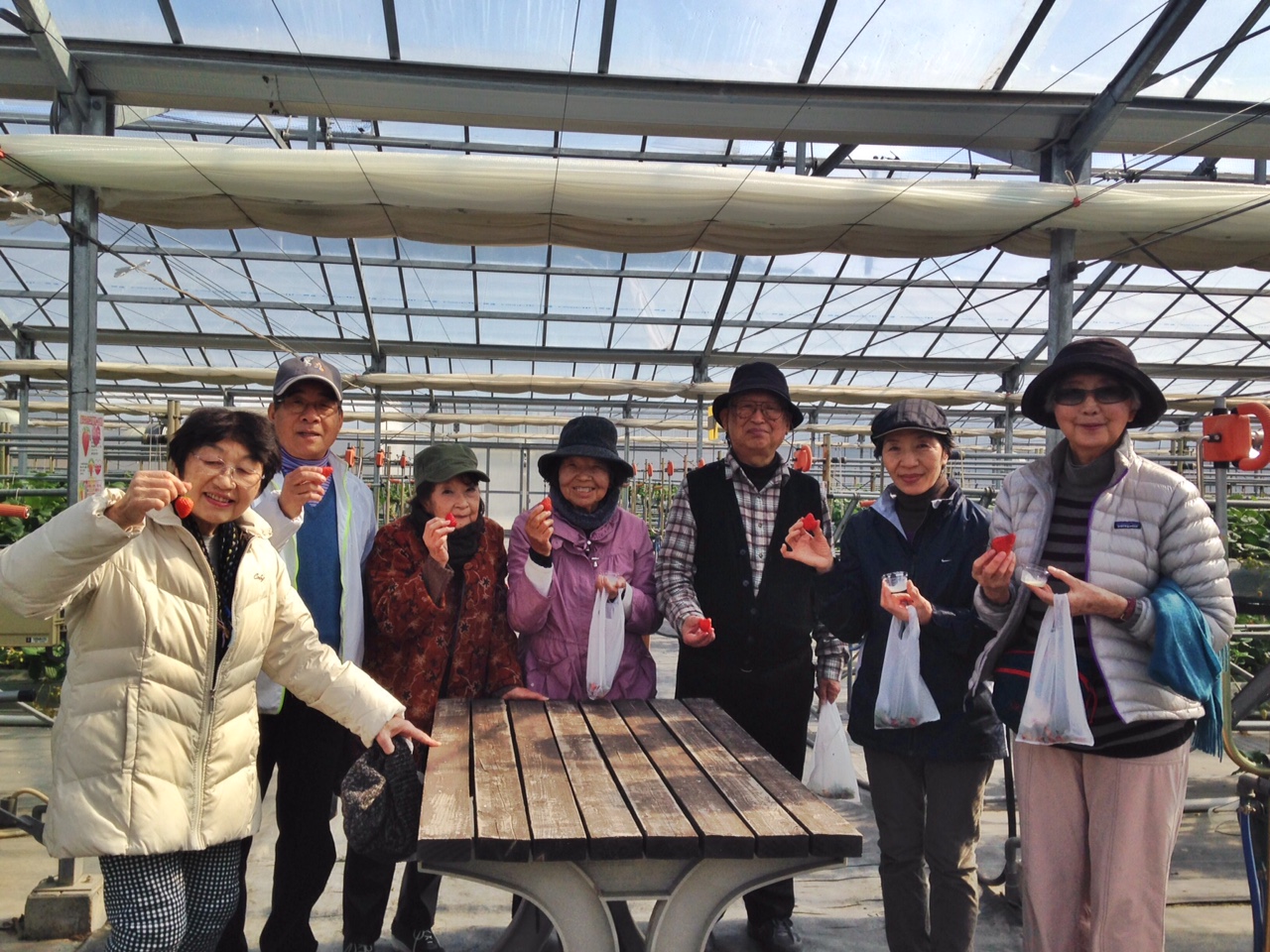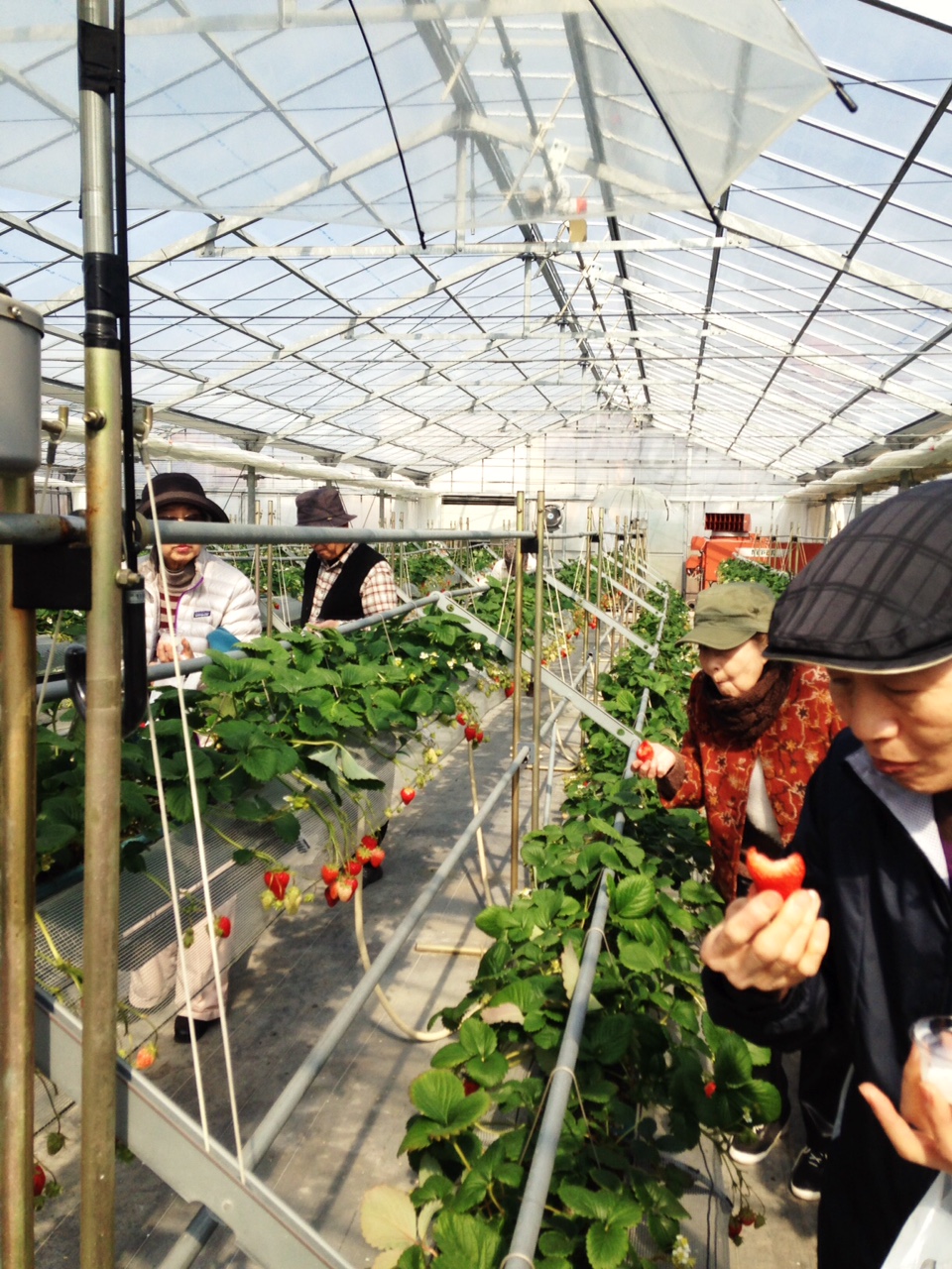 まずは、イチゴ狩り!ウォーキングのためのエネルギー補給?!笑