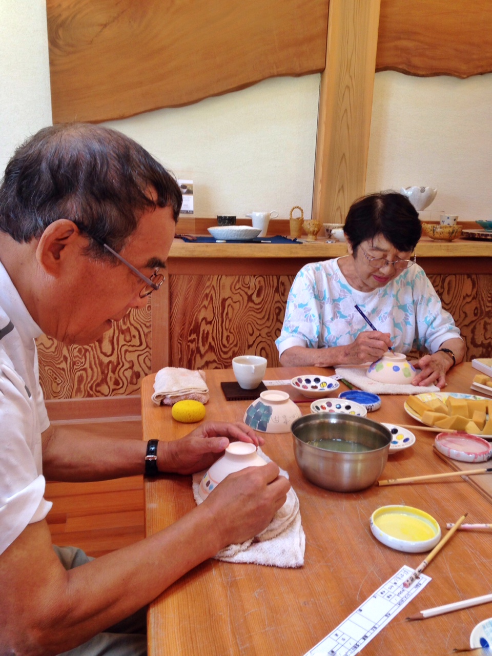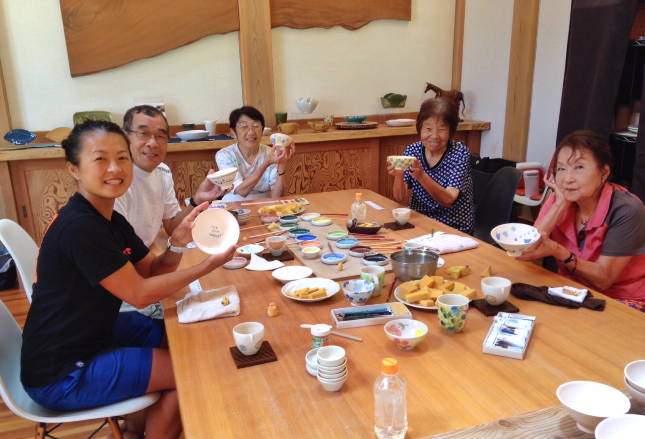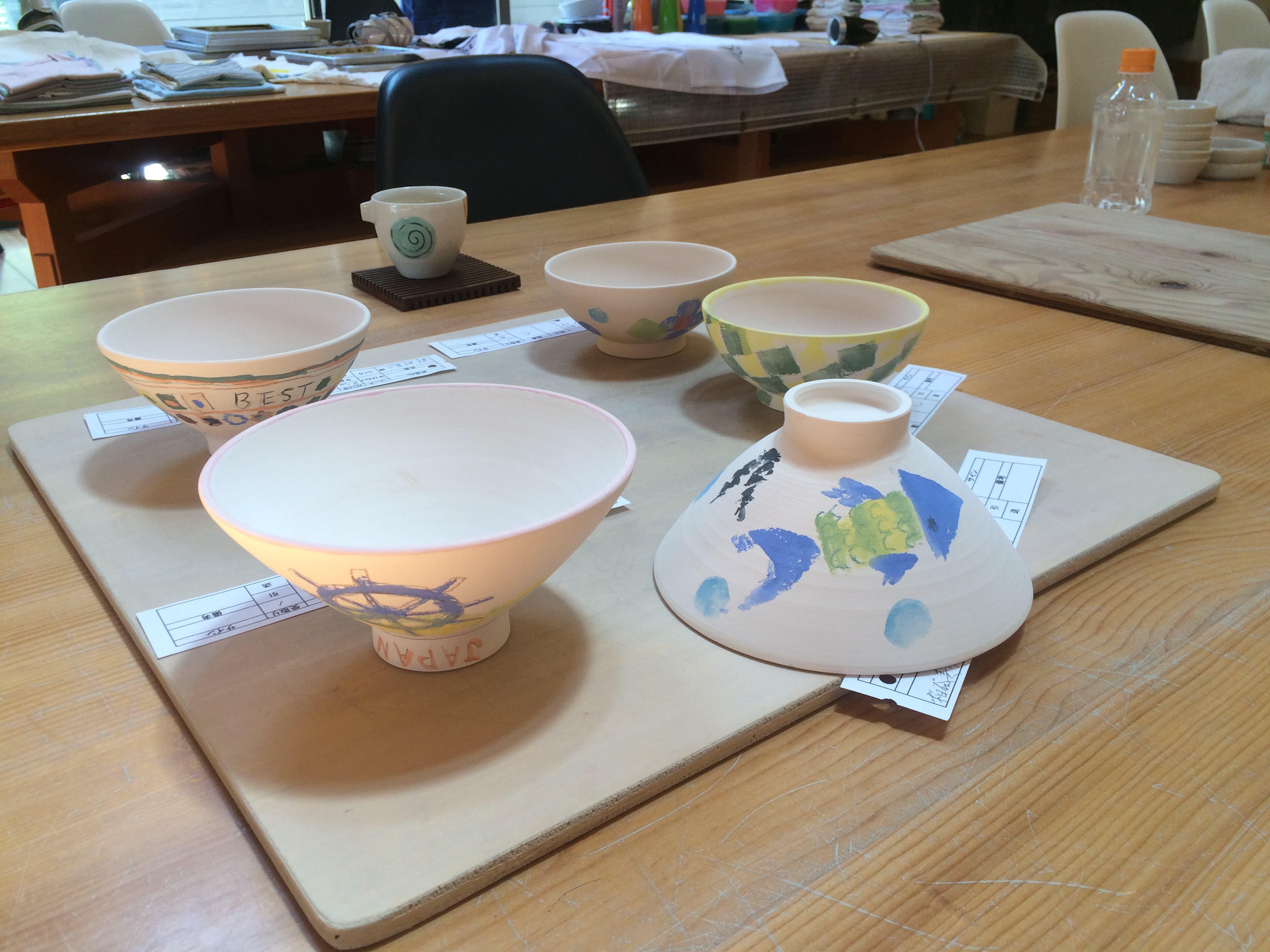 プロの皆さんにご指導いただき、世界で1つの自分だけの器になるよう絵を描きました。